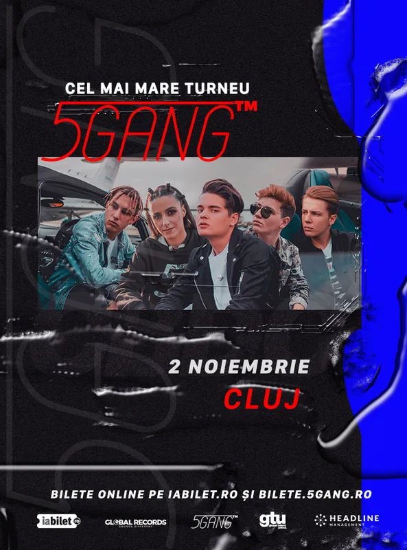 Trupa de puști 5GANG, devenită un fenomen în rândul copiilor cu vârste de 10 - 14 ani, anunță un turneu național, care se va opri și la Cluj-Napoca, în 2 noiembrie.