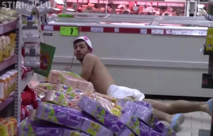A șocat lumea în Iulius Mall Cluj! Un tânăr a fugit gol prin mall, cu scutec pe el - VIDEO