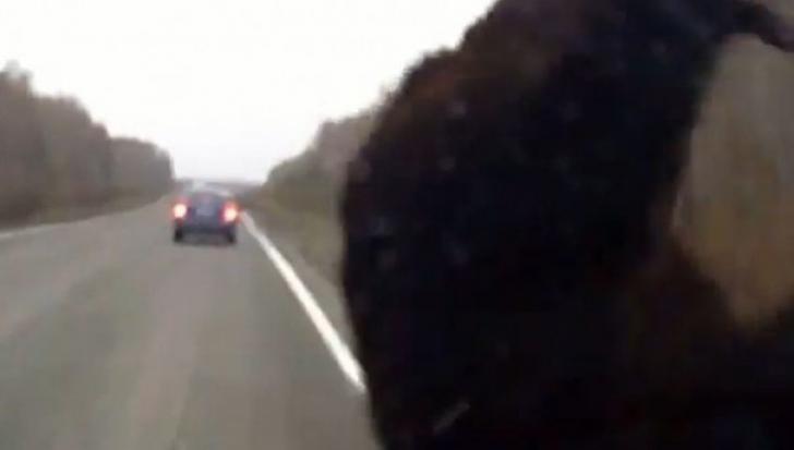 Un șofer din Rusia a avut parte de surpriza vieții lui în timp ce era la Volan. Șoferul conducea liniștit, probabil traversând o pădure, când din senin i-a ieșit în cale un urs.