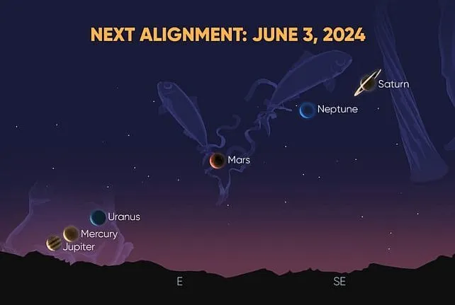 Alinierea planetelor va fi vizibilă în noaptea de 3 spre 4 iunie 2024, iar fenomenul va putea fi observat inclusiv din România. Fenomenul astronomic rar va avea loc peste câteva ore, când șase planete se vor alinia, eveniment ce nu se va mai repeta până în anul 2080.