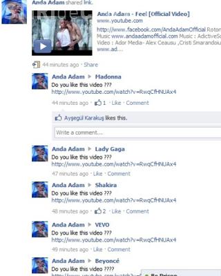 Anda Adam a postat clipul piesei "Feel" pe profilurile de Facebook ale vedetelor internationale si a lasat si un mesaj: "Va place acest video?"
