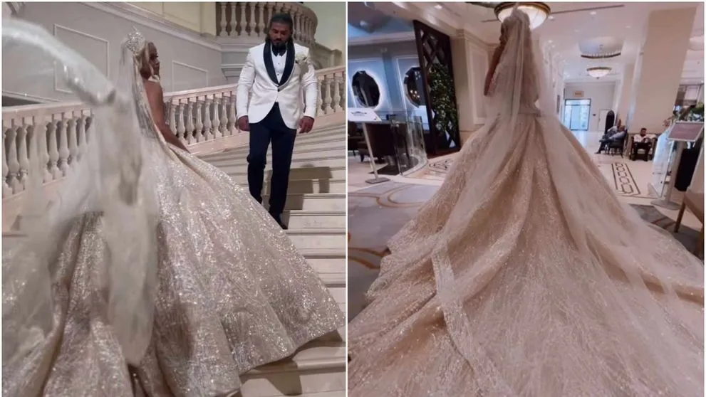 Artista a avut o rochie de mireasă ultra voluminoasă, cu care și-a impresionat invitații. Anda a avut și o diademă de prințesă, în ton cu rochia opulenta.