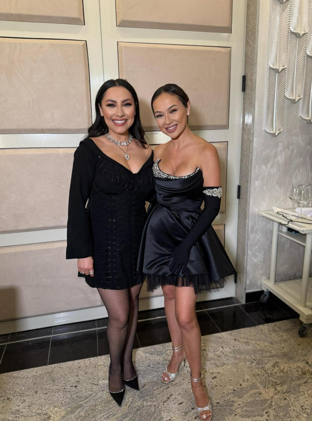 Andra și Vlăduța Lupău, apariții de senzație aseară: Îmbracate în rochii negre de seară, zici ca sunt mai degrabă surori decât nașă și fină FOTO