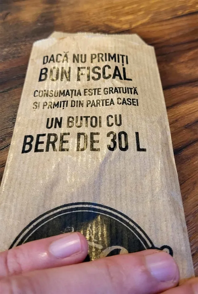 Anunț într-un bar din Cluj: ”Dacă nu primiți bon fiscal, consumația e gratuită” și primiți un cadou consistent