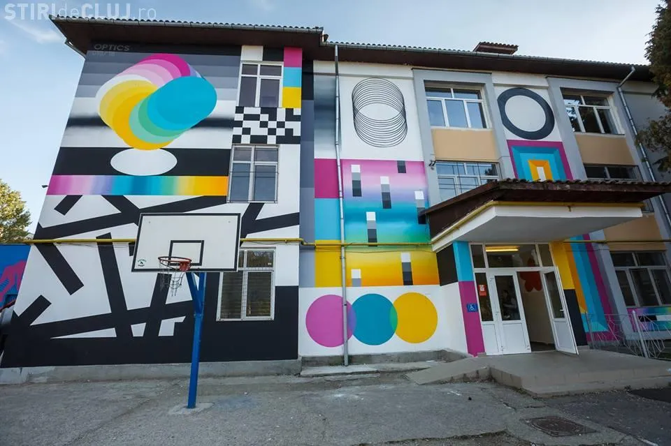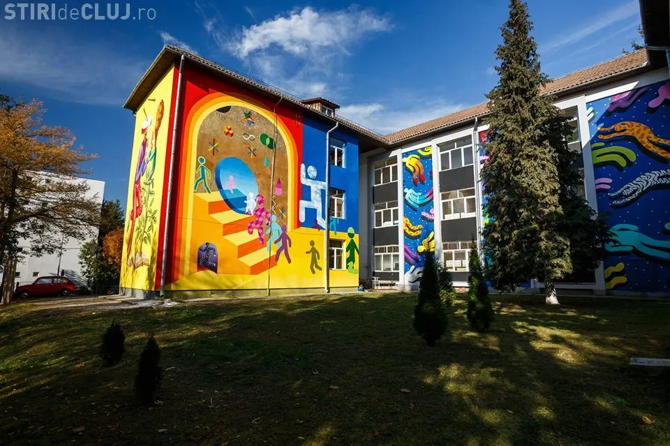 Artă în curtea școlii, la Cluj. Picturi murale pe pereții școlii Octavian Goga FOTO