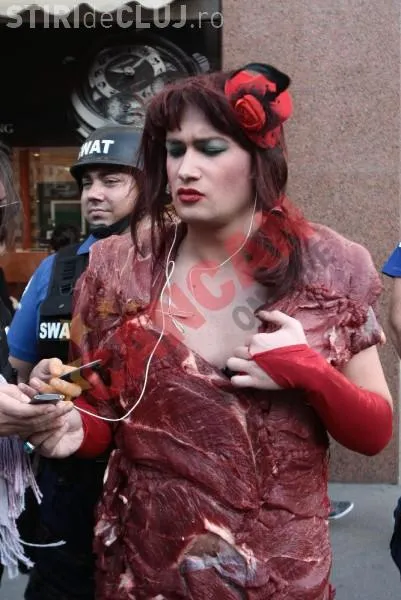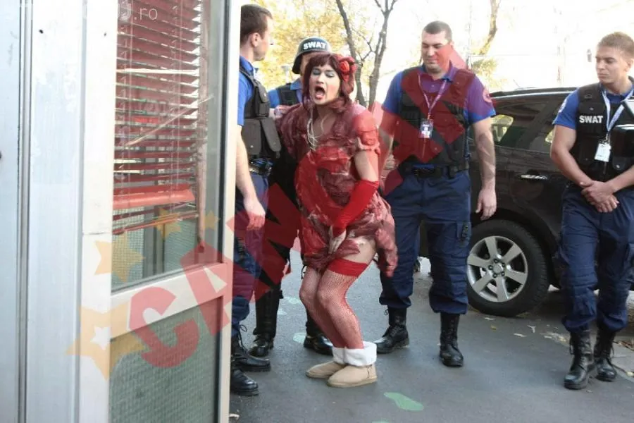 Bendeac o copiaza pe Lady Gaga: a umblat intr-o rochie din carne prin Bucuresti - FOTO