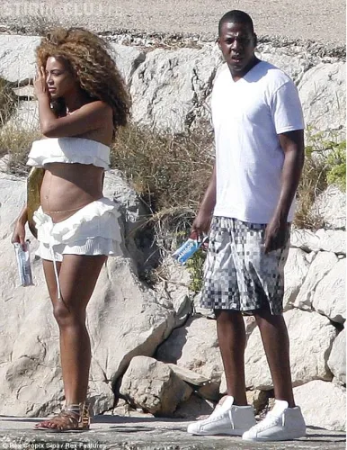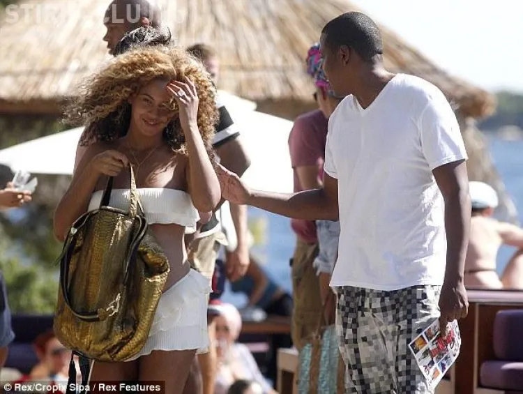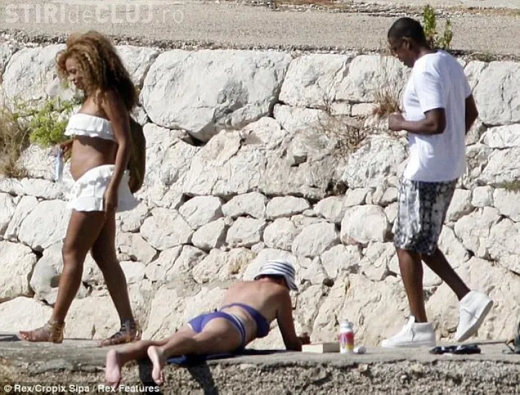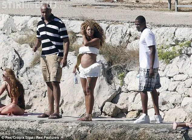 Beyonce, impreuna cu sotul ei Jay-Z, si-au facut aparitia pe o plaja din Croatia unde cuplul este in vacanta. Vedeta a lasat sa i se vada abdomenul care prinde forme.