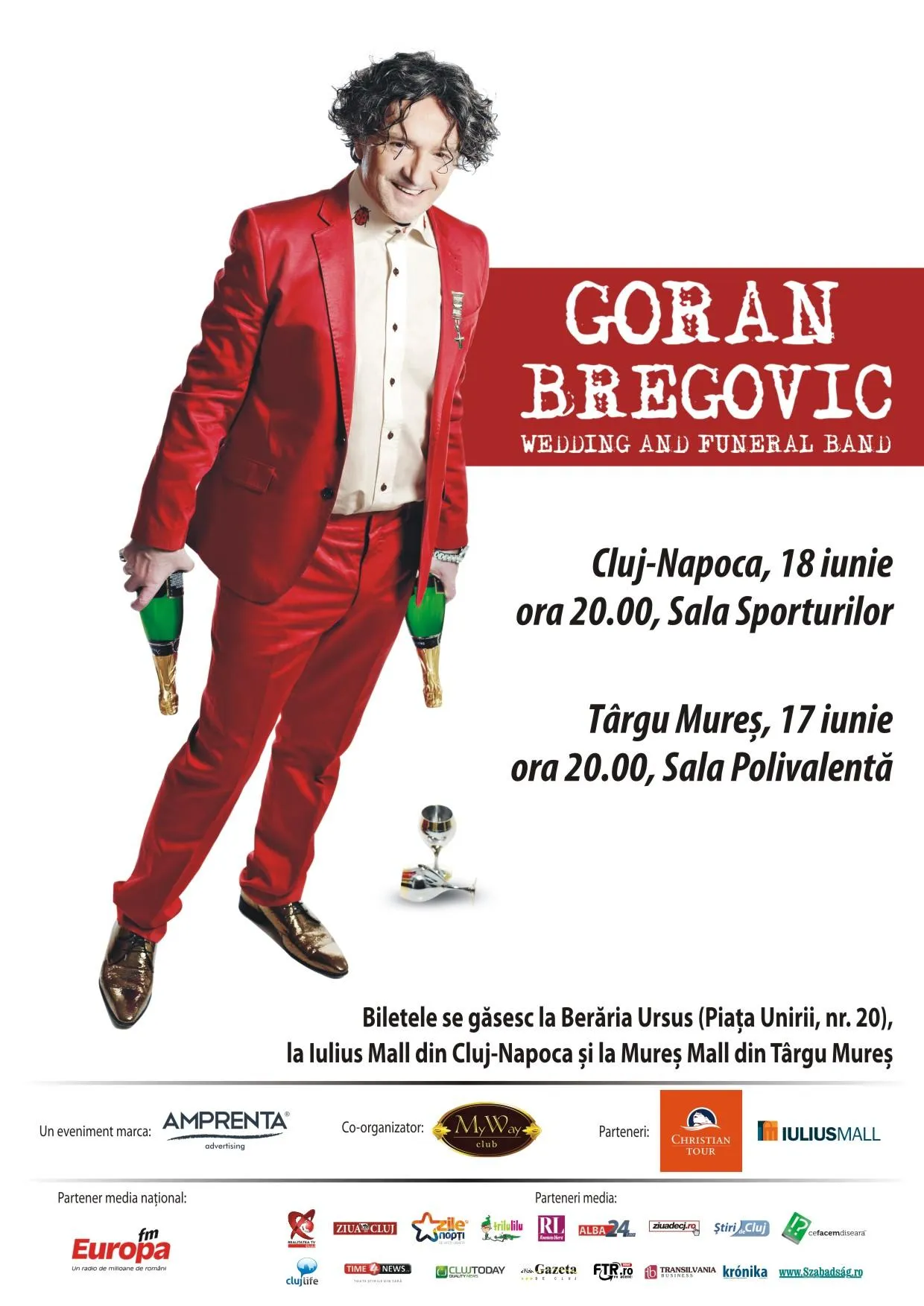 Goran BREGOVIC si a sa orchestra de "Nunti si Inmormantari" vor sustine un concert in Cluj Napoca , in 18 iunie, de la ora 20.00! BILETELE pot fi cumparate NON-STOP de la BERARIA URSUS (din centru, Piata UNIRII 20) incepand din 21.04, ora 14.00!