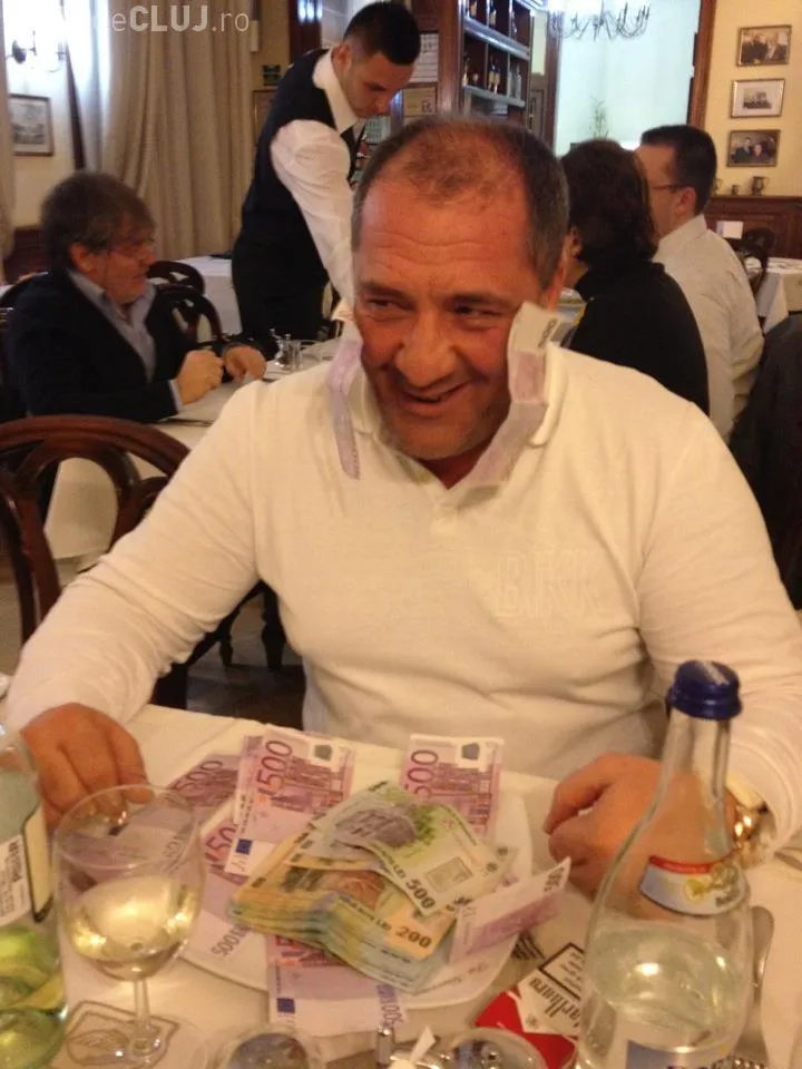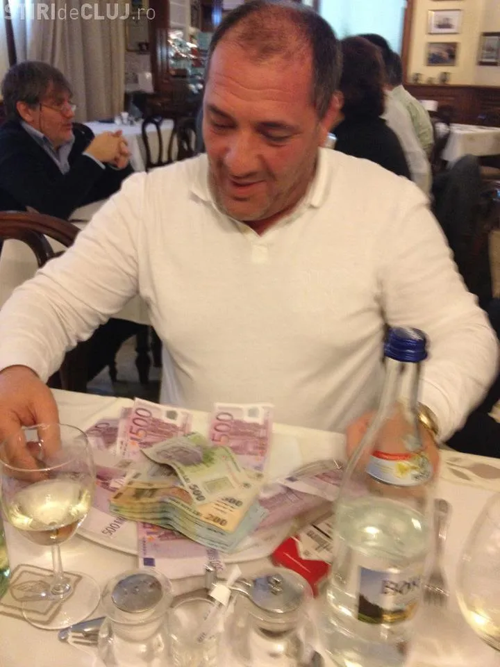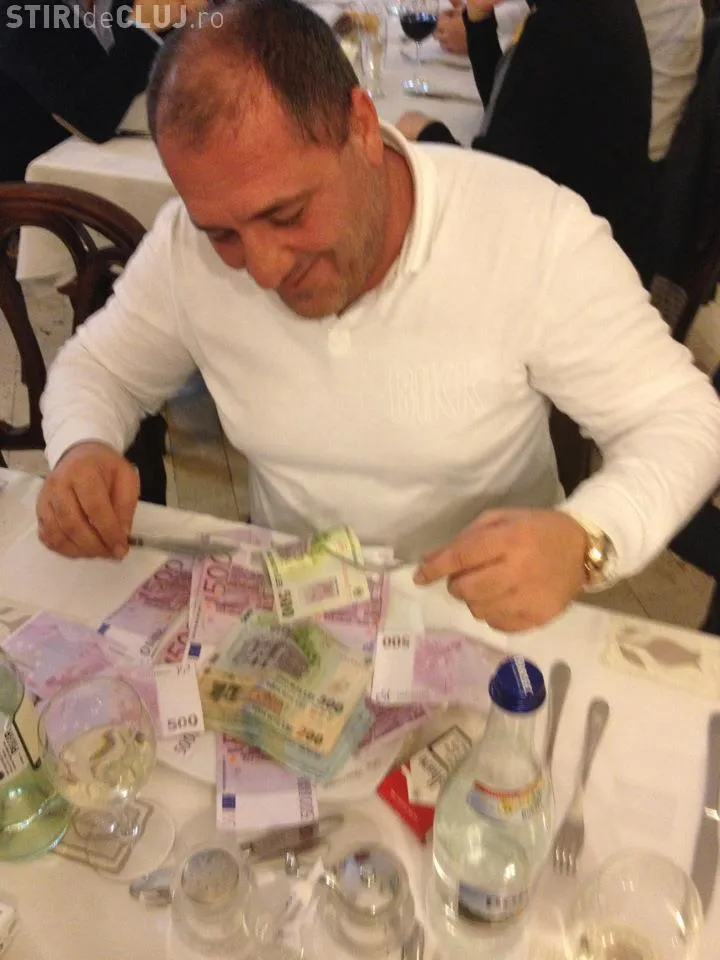 Bisnitarul clujean, Nelson Mondialu, socheaza din nou pe Facebook, postand fotografii in care "mananca" mii de euro cu cutitul si furculita. Scena se petrece intr-un restaurant, in timp ce in jur sunt oameni care stau la mese.