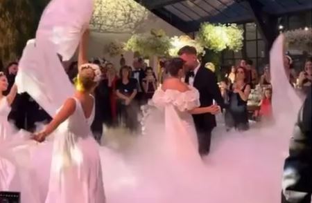 Scena a fost de o frumusețe aparte, subliniată de locația superbă, plină de lumină discretă combinată cu un apus natural care se reflecta în detaliile albe ale decorului. Dansul lent, acompaniat de versurile sensibile ale melodiei, a creat o atmosferă de basm. Oaspeții, martori la această scenă intimă și plină de emoție, au fost profund mișcați de simplitatea și frumusețea momentului.