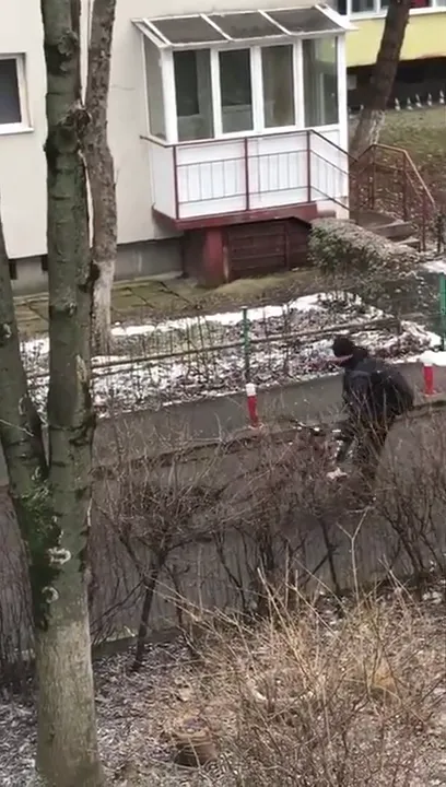 Câinele pare a avea zgardă la gât, deci are și un proprietar. Este inexplicabil de ce acest animal este liber pe aleile dintre blocuri, în condițiile în care pare a fi agresiv.