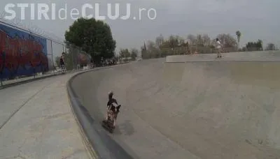 Câinele practicant de sporturi EXTREME. Vezi cum face parkour și sare cu skate-ul VIDEO