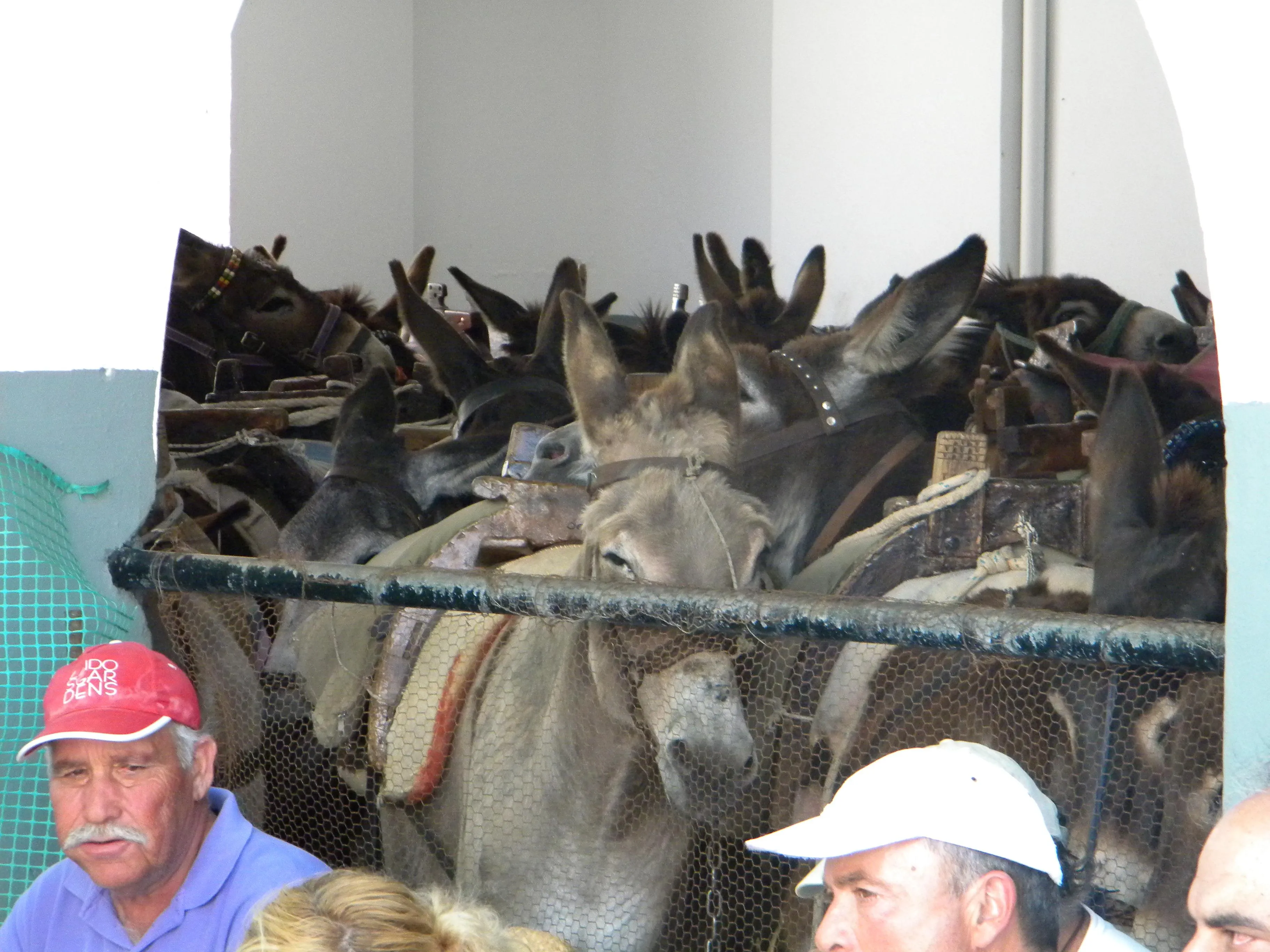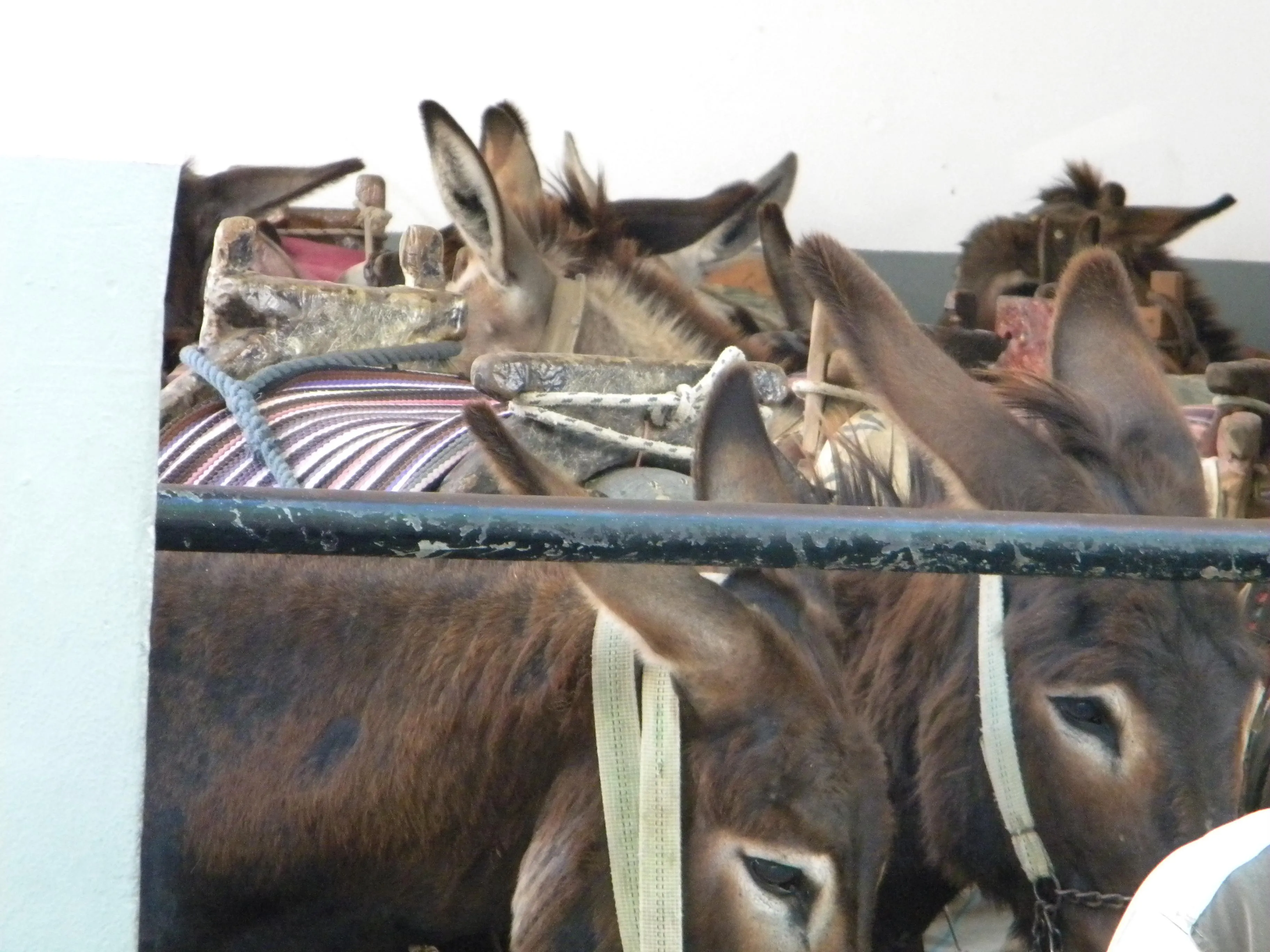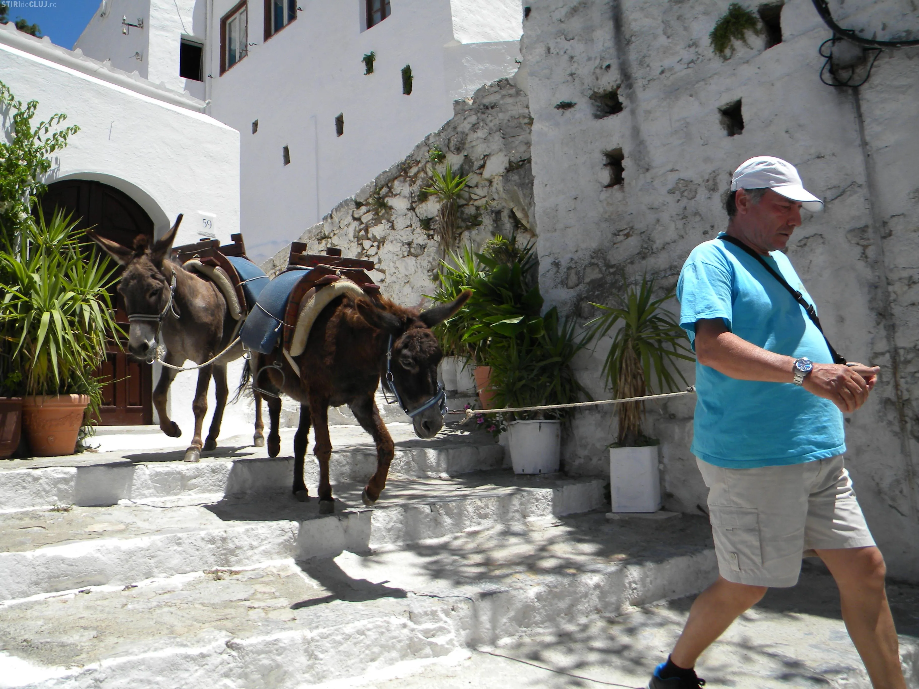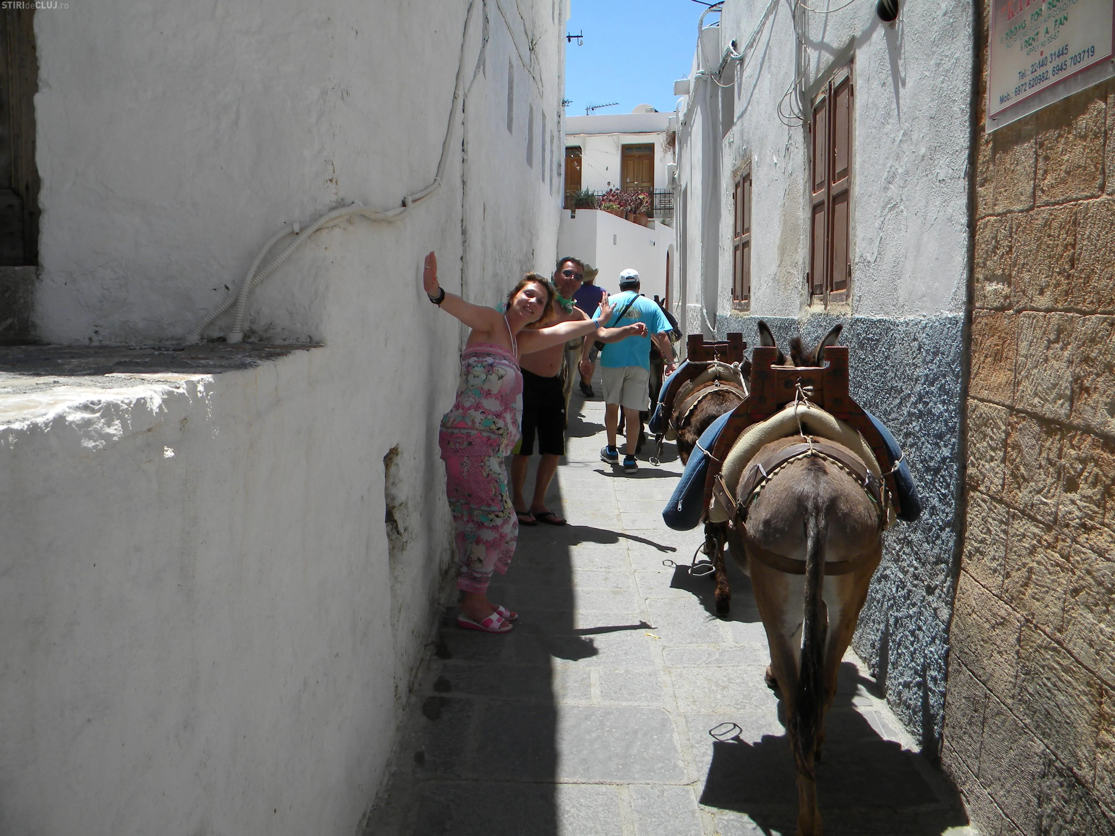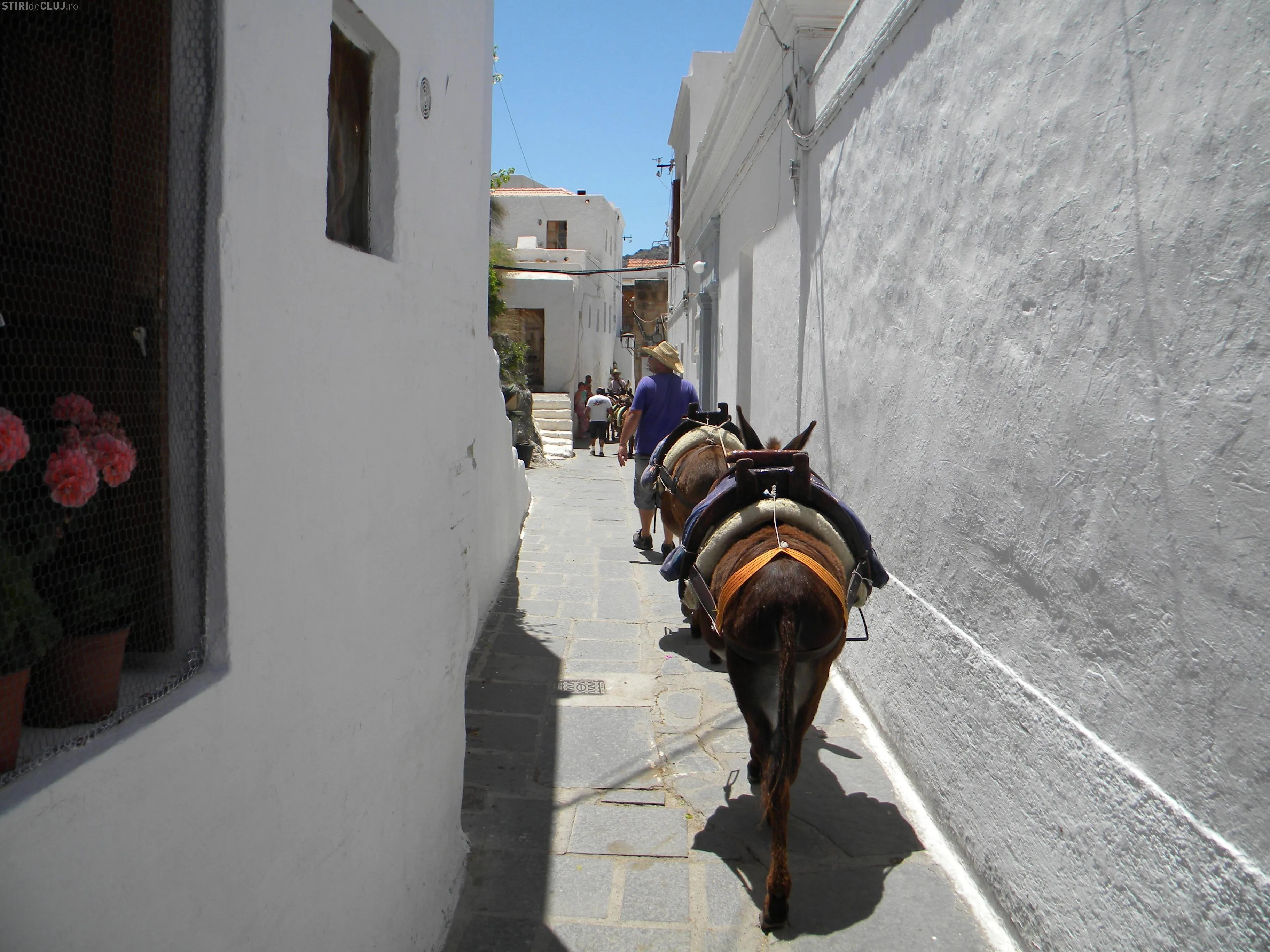Drumul din micuțul port din Lindos urcă până la mărețul Acropolis, construit pe cea mai înaltă stâncă. Până acolo turiștii pot închiria măgăruși, pe care pot colinda străduțele satului. Trebuie să ai o anumită raportare la animale pentru a le încăleca și a te lăsa purtat prin micul sat Lindos. Eu, sincer, nu am putut să fac așa ceva, fiindu-mi prea milă de bietele animale. Mai milă mi s-a făcut când am văzut ”garajul” cu măgăruși de pe o stradă din Lindos.