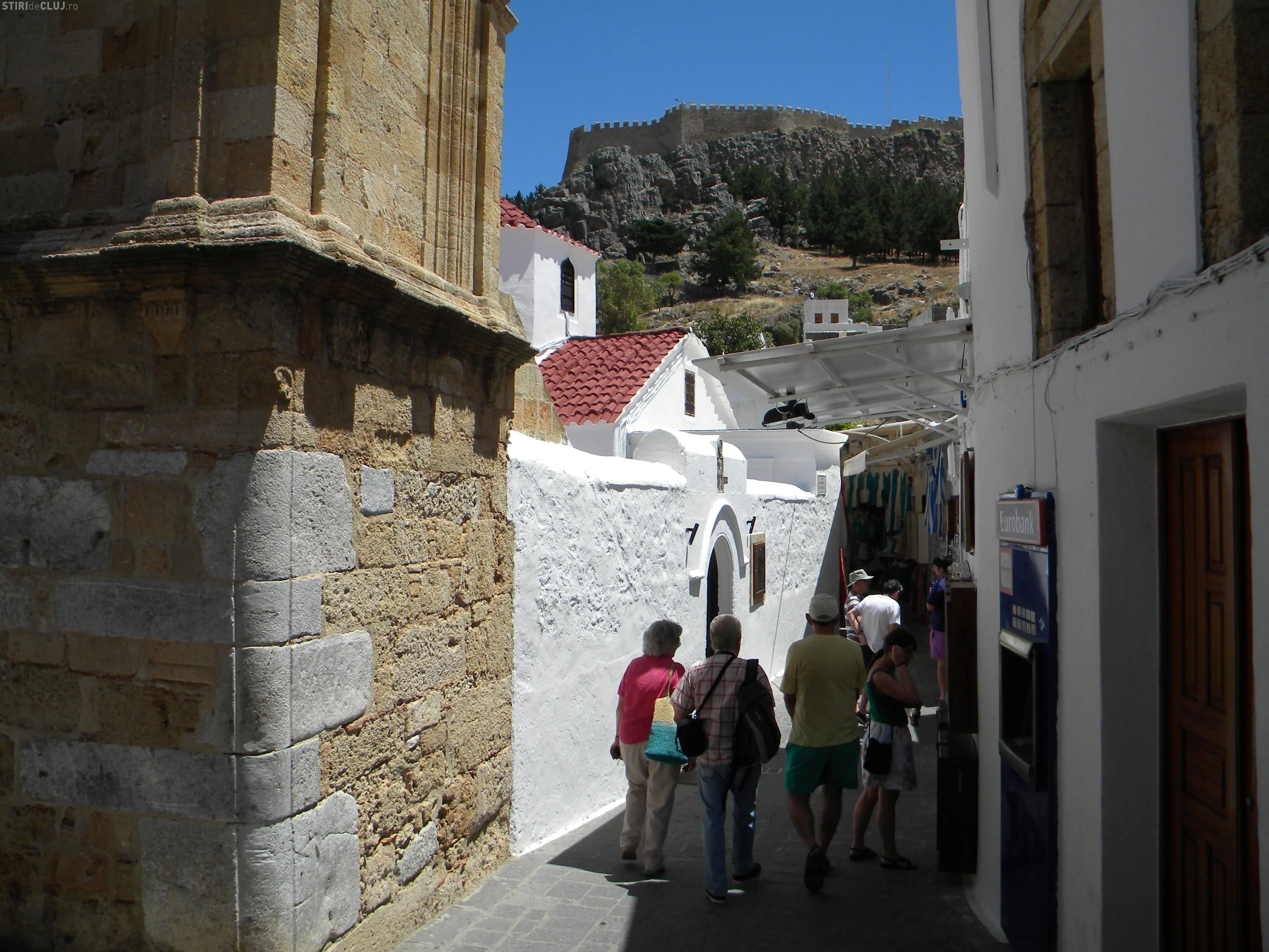 Drumul până în Lindos durează circa 2 ore. Locul este cu adevărat binecuvântat, fiind o adevărată Mecca a turiștilor. Grecii au reușit să facă minuni în acest mic sat, care a rămas încremenit în timp fiind parcă turnat în ceară. Totul este perfect. Casele sunt vopsite în alb și albastru, străduțele pietruite te invită să le colinzi, iar grecii, fără a fi exagerat de insistenți, îi așteaptă pe turiști la terasele spectaculoase, amenajate pe acoperișul clădirilor.