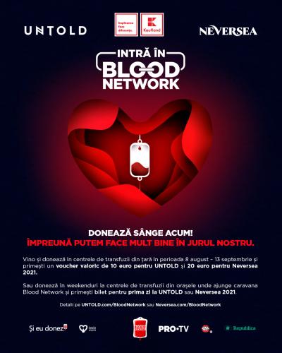 Campania BLOOD NETWORK este realizată cu sprijinul Kaufland România, partener oficial al UNTOLD și NEVERSEA, cu ajutorul platformei Și Eu Donez și al Institutului Național De Transfuzii Sanguine.