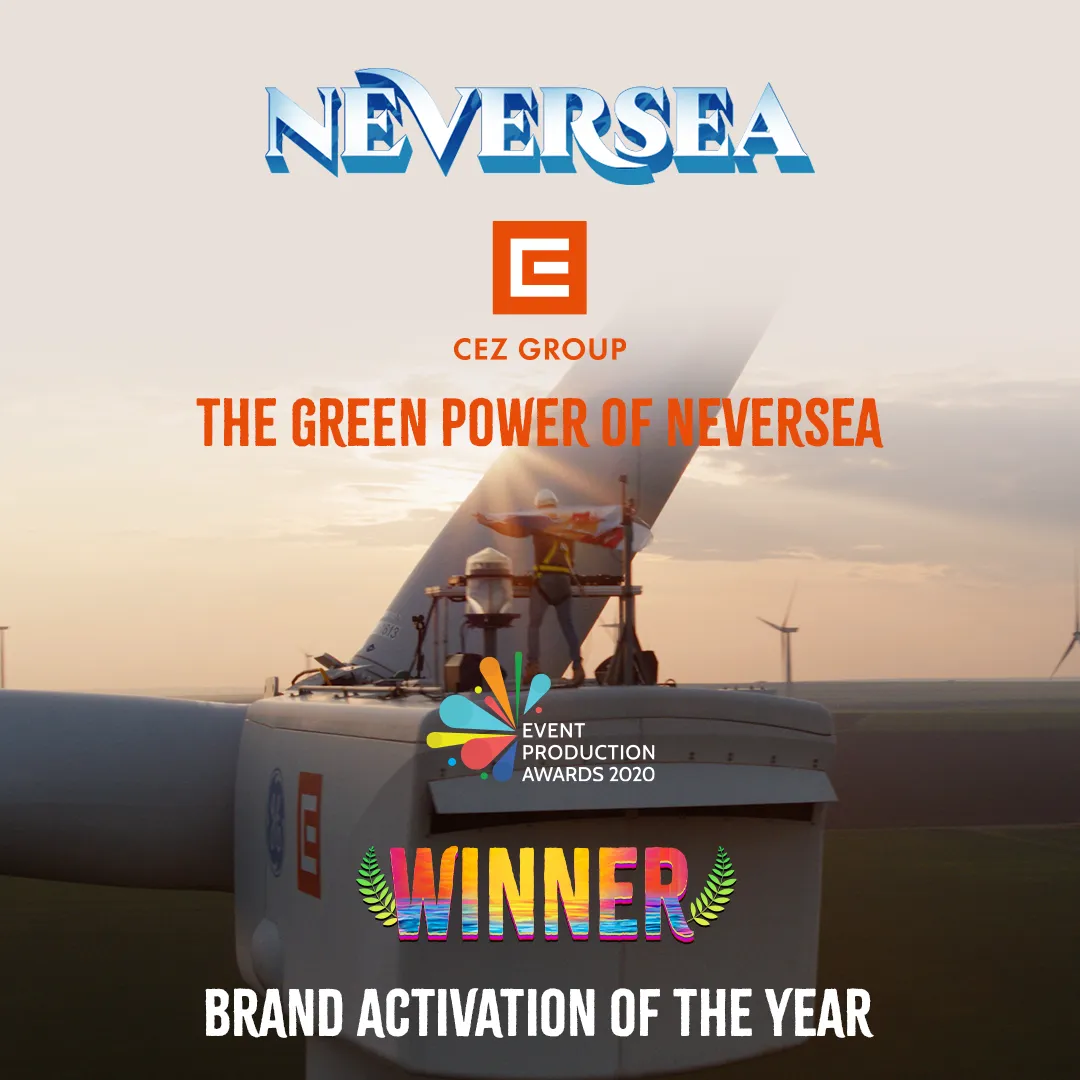 Festivalul Neversea a fost desemnat câștigător la categoria Brand Activation Of The Year cu campania “The Green Power of Neversea” dezvoltată în parteneriat cu CEZ Group România. Prin această campanie, festivalul Neversea își propune să devină primul festival de muzică din lume alimentat aproape integral cu energie verde, din sursă eoliană, provenită din Parcul Eolian Fântânele-Cogealac-Grădina al Grupului CEZ, situat în județul Constanța.