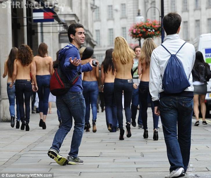 Bărbații din Londra au avut palpitații în momentul în care au trecut prin centrul orașului și au văzut un grup de super-manechine, ce păreau a umbla pe stradă fără sutiene.