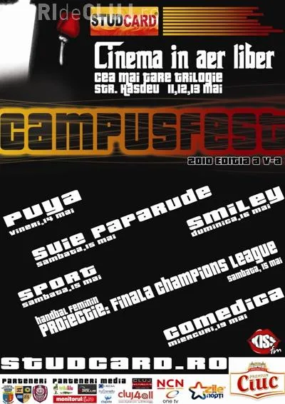 Campus Fest va trage cortina abia in data de 19 mai, dar pana atunci vor sustine concerte Puya, in data de 14 mai, Suie Paparude, in 15 mai, Smiley, in 16 mai.