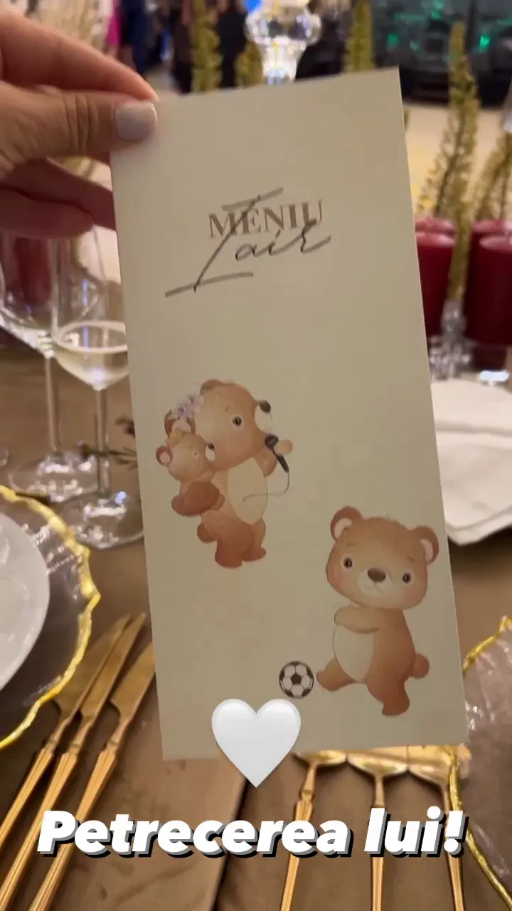 Marți, 27 septembrie, a fost botezul la biserică, iar după-amiaza a început petrecerea într-o locație neprecizată. Sala a fost amenajată ca un basm.