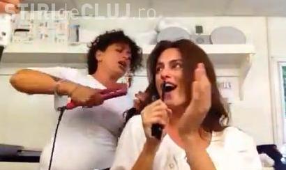 Fotomodelul român, Catrinel Menghia a postat pe Facebook ultima sa prestaţie muzicală dintr-un coafor.