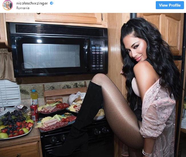 Artista a scris într-o postare că a mâncat salam românesc și cașcaval după concert, iar ca desert a servit fructe – struguri, căpşuni şi mere tăiate pe jumătate. ”Ce-mi fac mie puţin salam şi caşcaval”, a comentat Nicole Scherzinger la poză.