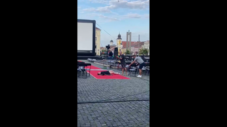 Divele autohtone fac orice pentru o poză. La deschiderea TIFF 2021, o invitată s-a aruncat pe jos, pe covorul roșu din Piața Unirii, iar doi fotografi imortalizau scena.