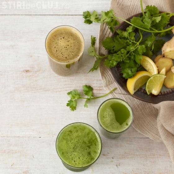 Trebuie să ai cateva frunze de varza de Collards, o jumatate de mar de dimensiune medie, o jumatate de castravete, doua radacini de telina, o jumatate de lamaie curatata si o jumatate de lime. Totul se amestecă într-un blender, iar dacă ti se pare compozitia prea groasa, mai poti adauga putina apa, potrivit kfetele.ro.