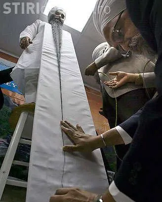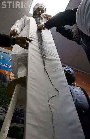 Cea mai lunga barba din lume masoara 1,895 metri si ii apartine staretului templului Guru Nank Sikh, din Surrey, Anglia.