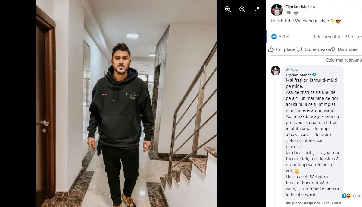 Hai, să aveți Sărbători fericite! Bucurați-vă de viață, că nu trăiește nimeni în locul vostru!”, a scris Ciprian Marica, pe Facebook.