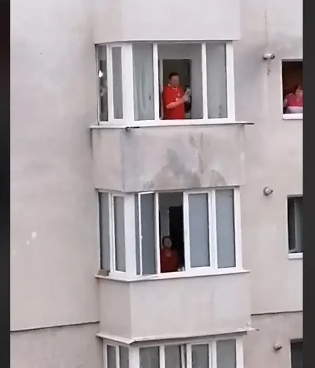 Eroii scenei, care nu a fost o parodie, au ieșit pe geam și s-au certat ca la un ușa cortului, înjurându-se și aruncând apă unii în alții. Toți vecinii eu ieșit la geamuri și s-au apucat să filmeze.