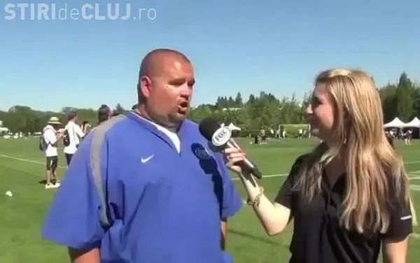 O tânără reporteriță din Statele Unite ale Americii a avut parte de un incident nefericit în timp ce realiza un interviu pe un teren de fotbal american.