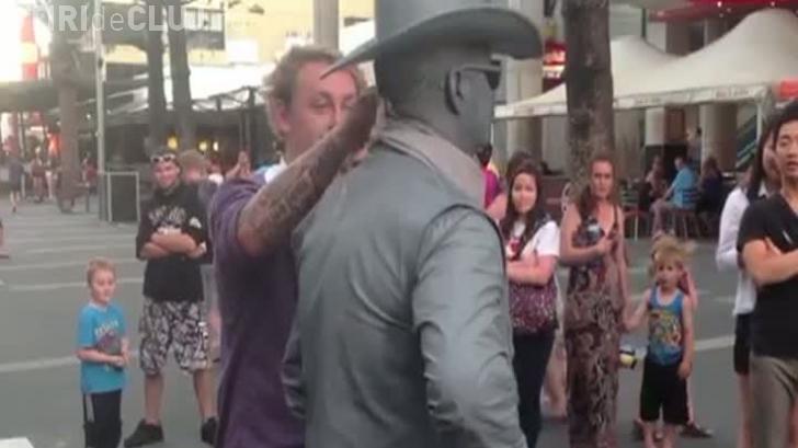 Un moment inedit a fost surprins recent pe cameră și a reușit să ajungă foarte rapid viral pe internet. Un tânăr pus pe glume a făcut marea greșeală de a enerva o ”statuie umană”.