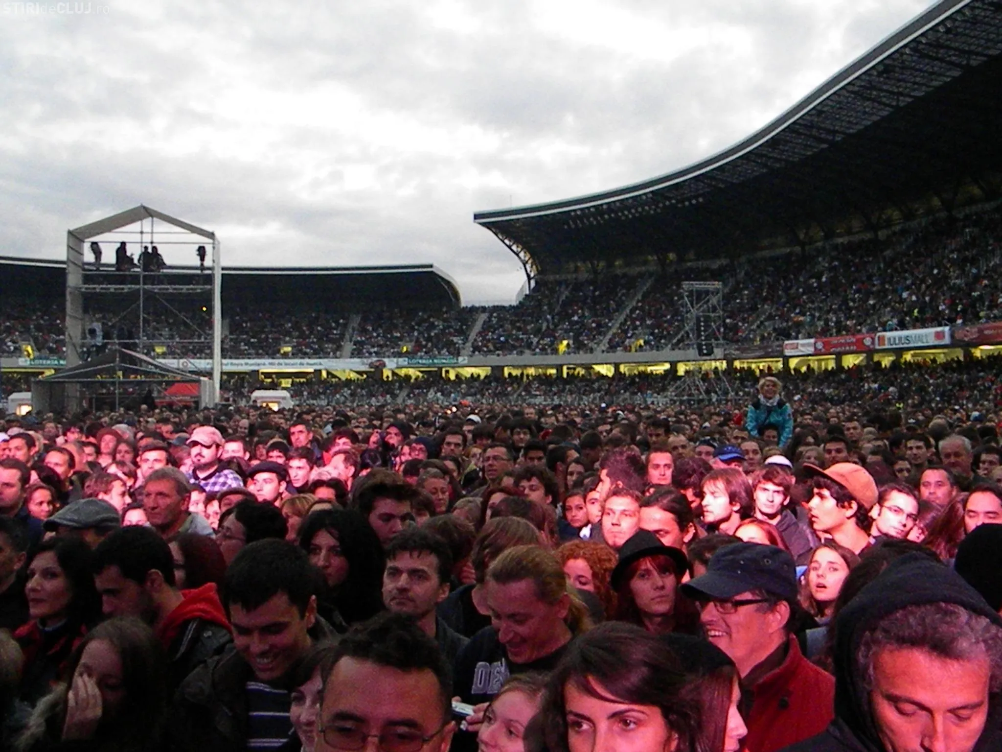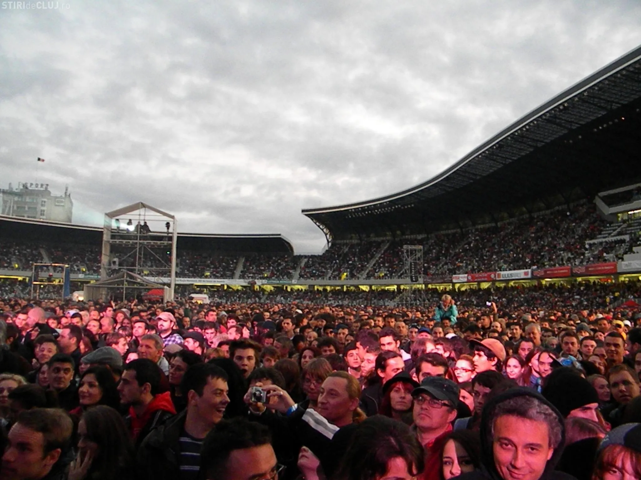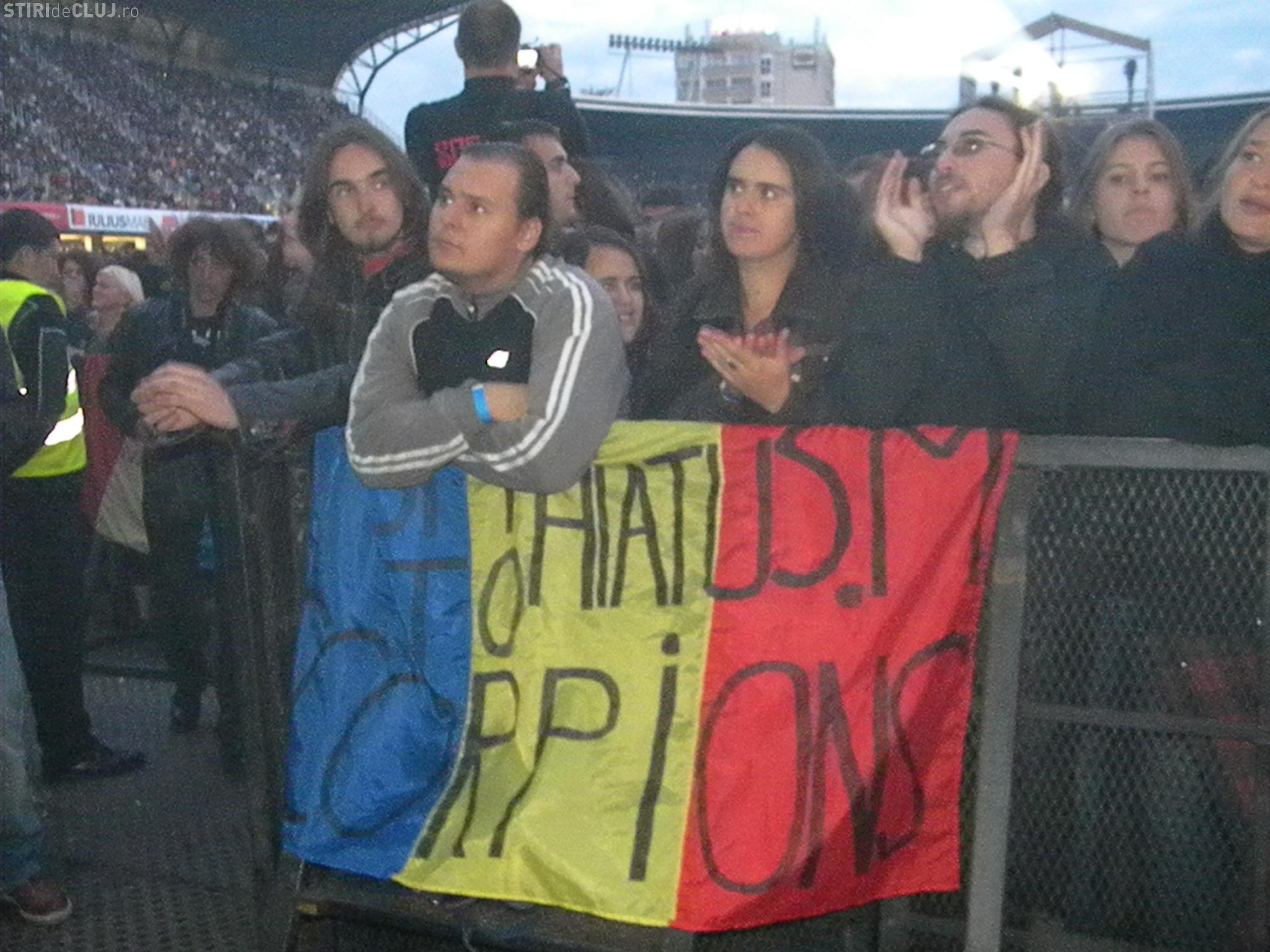Stadionul Cluj Arena este aproape plin, cu toate ca organizatorii se temeau ca spectatorii vor veni numai dupa ora 20.00, pentru a-i vedea pe cei de la Scorpions.