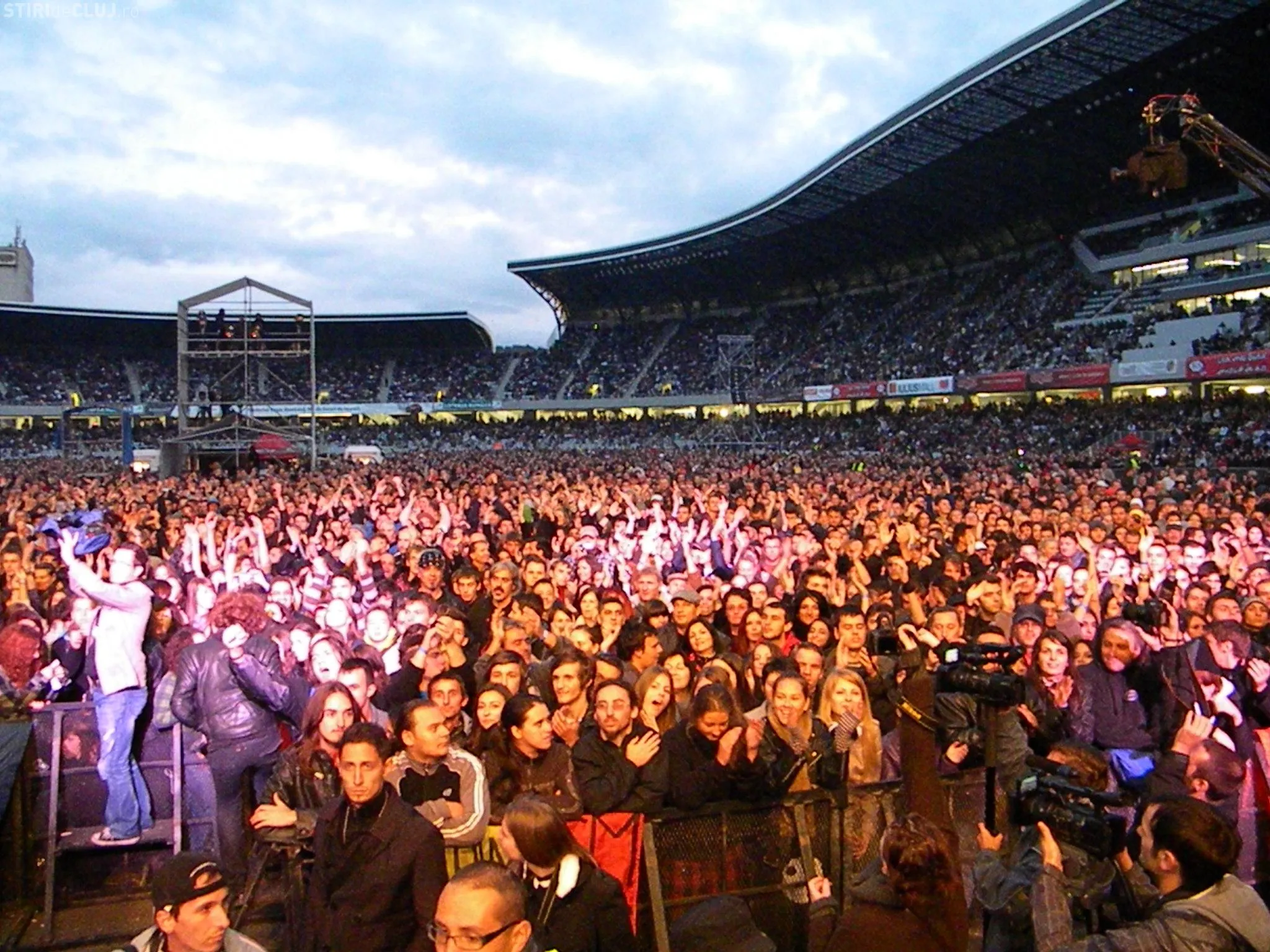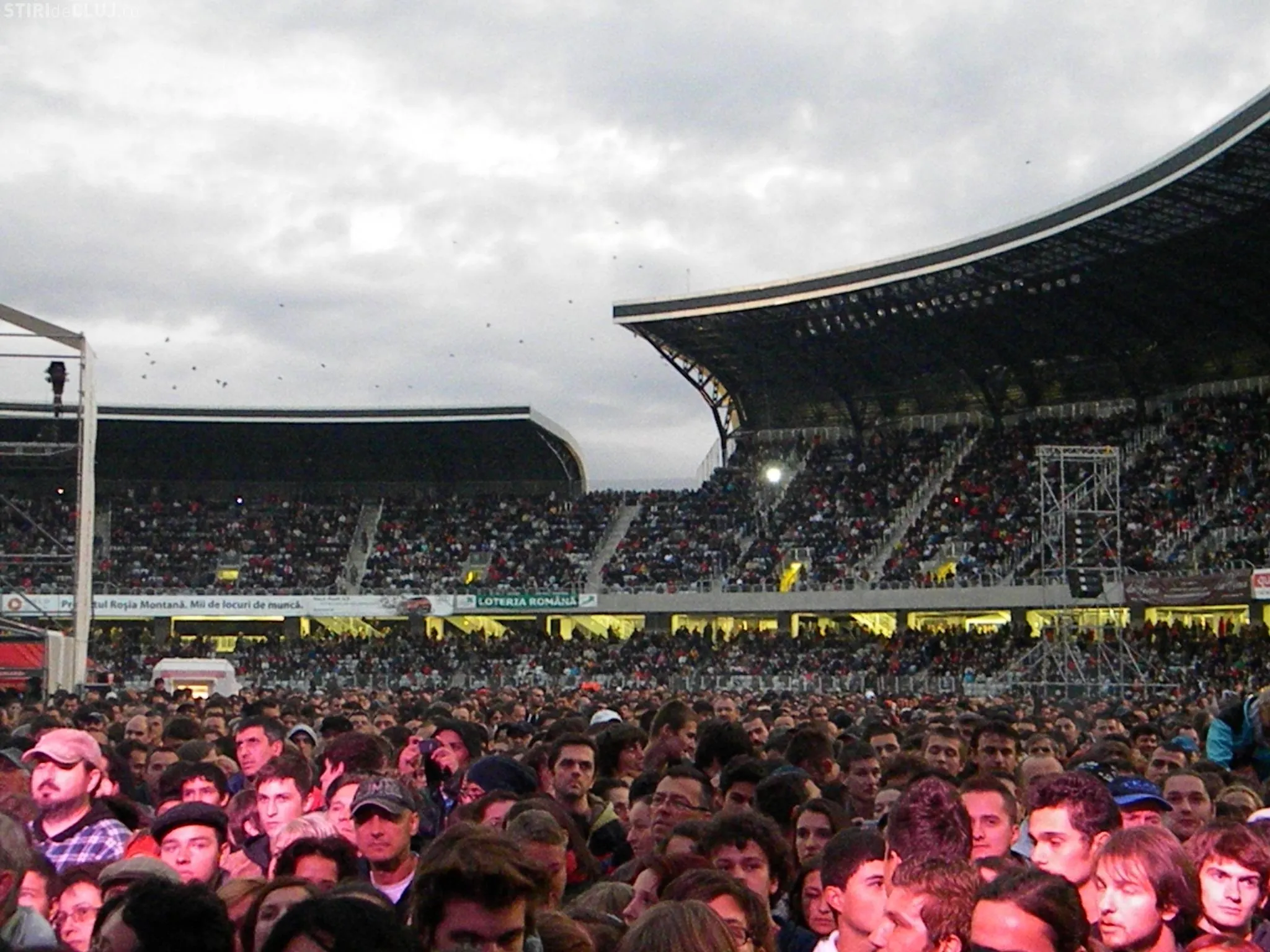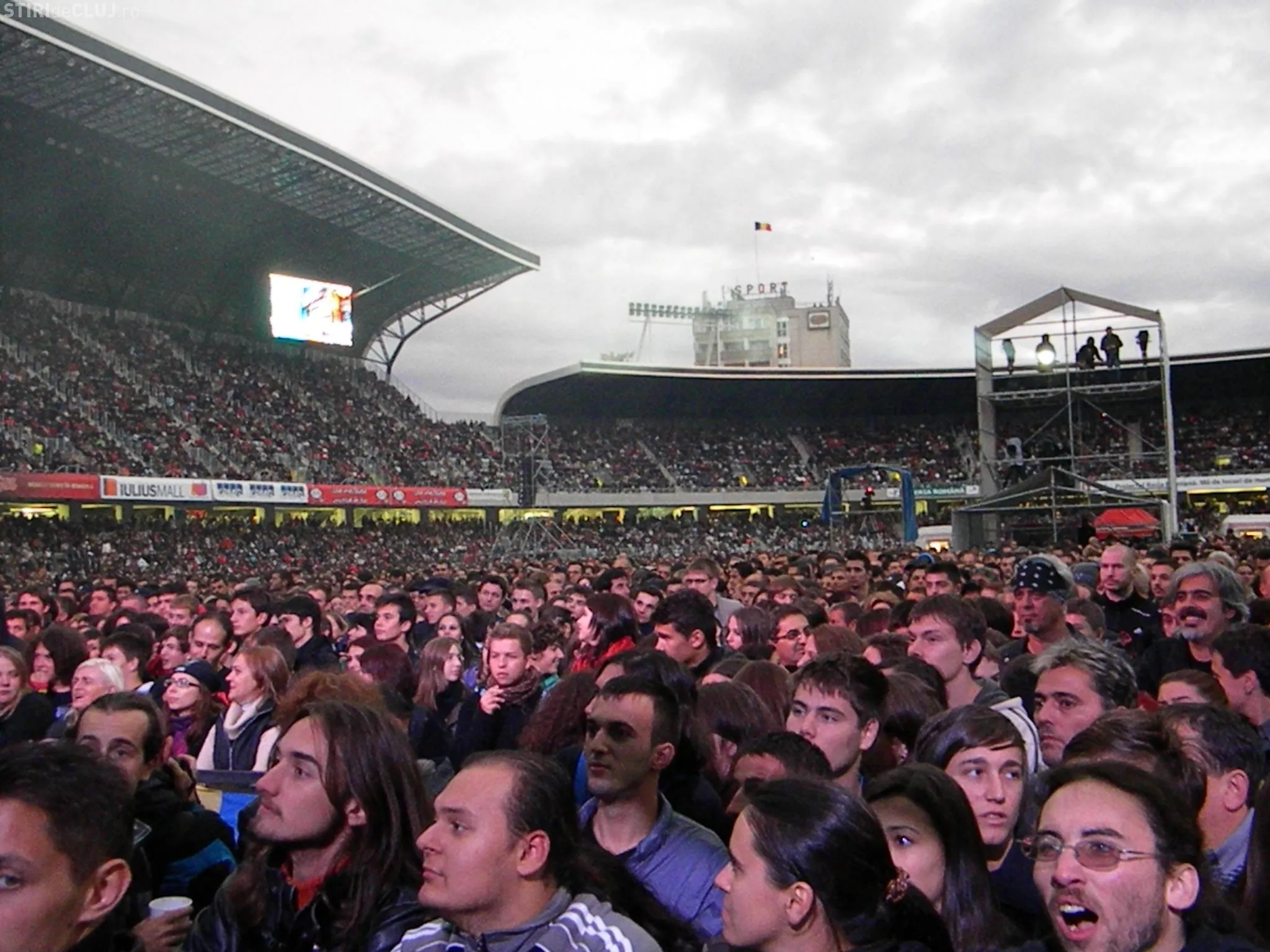 Stadionul Cluj Arena este aproape plin, cu toate ca organizatorii se temeau ca spectatorii vor veni numai dupa ora 20.00, pentru a-i vedea pe cei de la Scorpions.