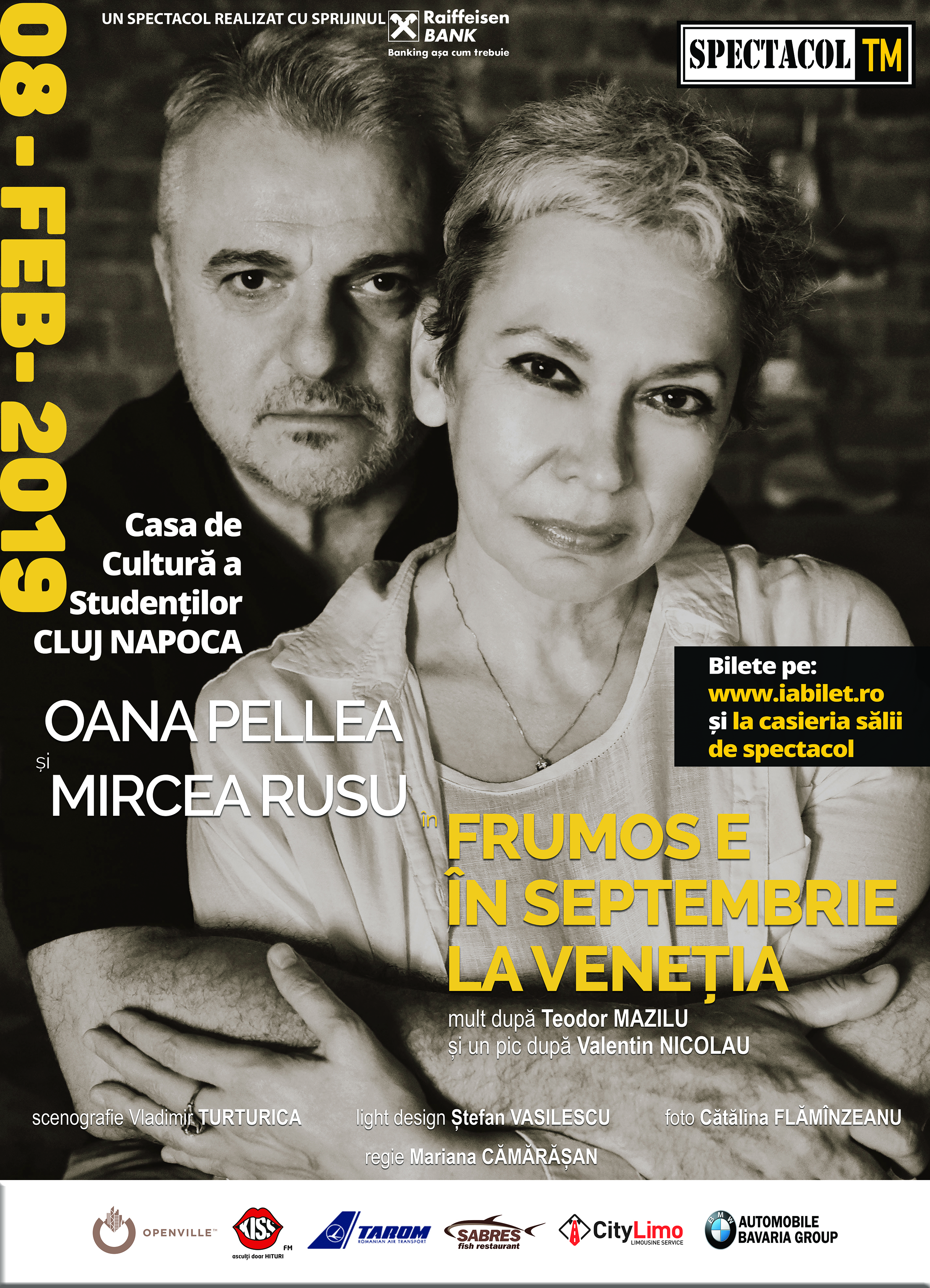 În premieră pentru Cluj, Oana Pellea, alături de Mircea Rusu, aduce pe scena Casei de Cultură a Studenților spectacolul ”Frumos e în septembrie la Veneția”, vineri, 8 februarie 2019, începând cu ora 20:00.