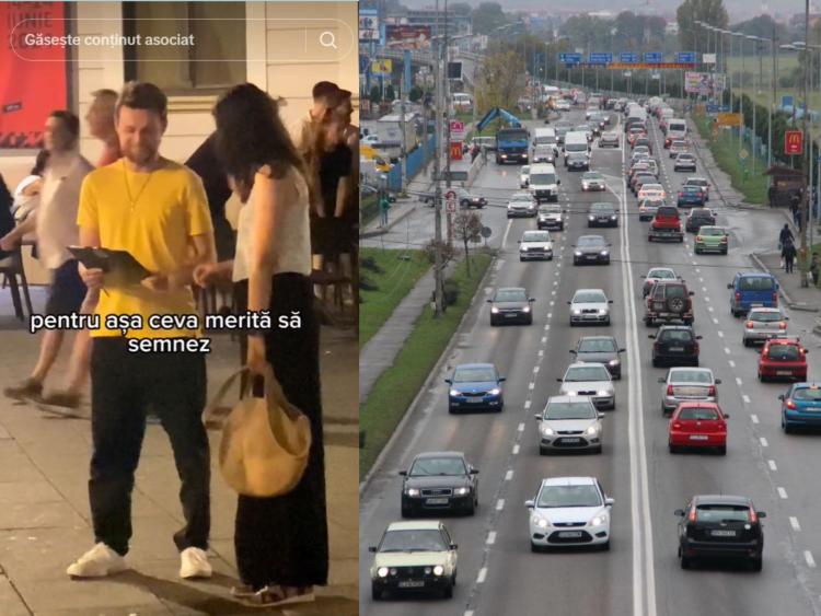 În numai câteva secunde, cei doi au reușit să convingă o persoană să semneze petiția care promovează construirea unui zid între Cluj-Napoca și Florești.