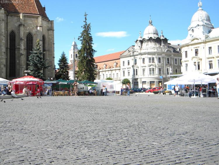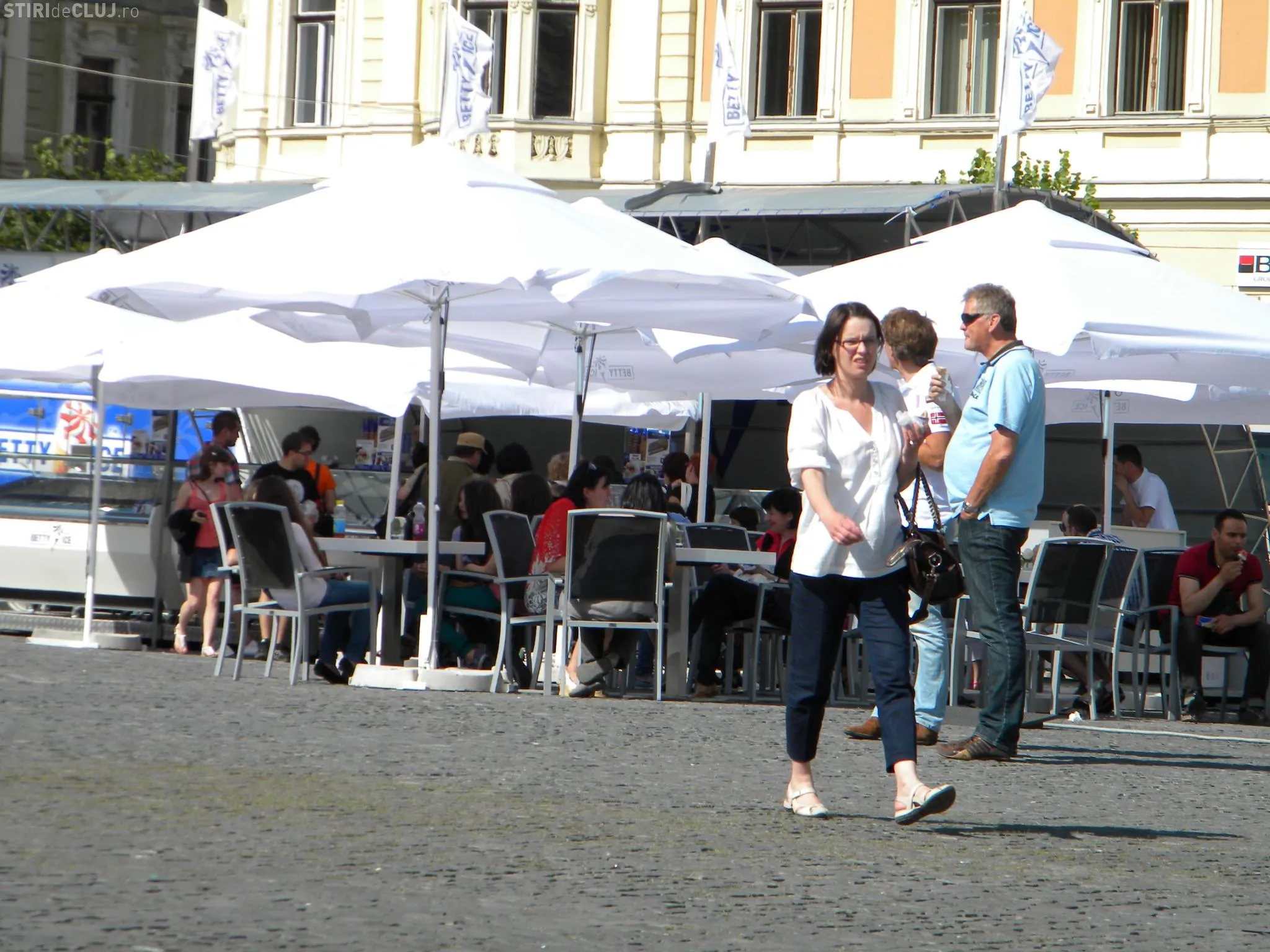 Vremea buna, dar si atmosfera frumoasa din Piata Unirii i-a facut pe clujeni sa iasa din casa si sa se relaxeze la o ingehtata.
