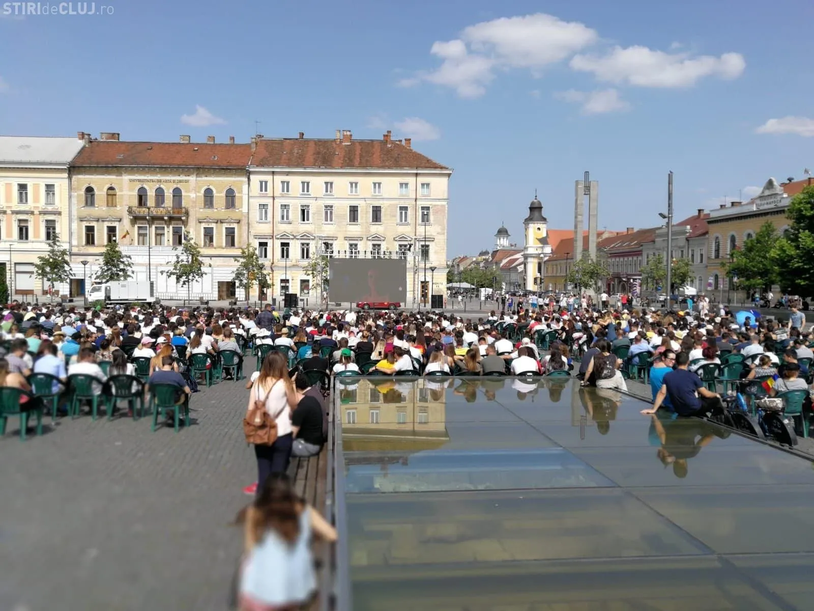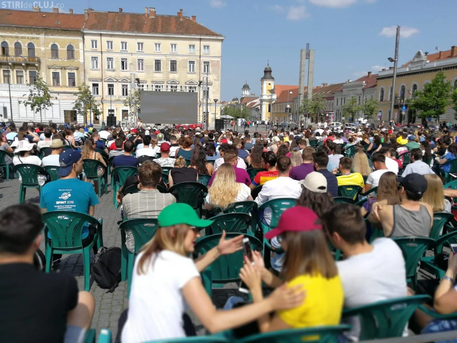Un ecran de mari dimensiuni a fost amplasat în centrul Clujului, în Piața Unirii, pentru vizionarea în aer liber a finalei de la Roland Garros, în care joacă Simona Halep.