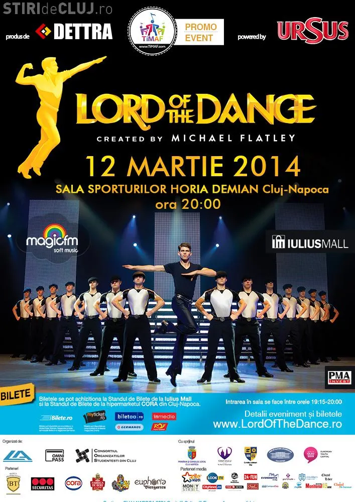 Spectacolul Lord of The Dance va avea loc în data de 12 martie, de la ora 20.00, la Sala Sporturilor Horia Demian, începând cu ora 20.00.