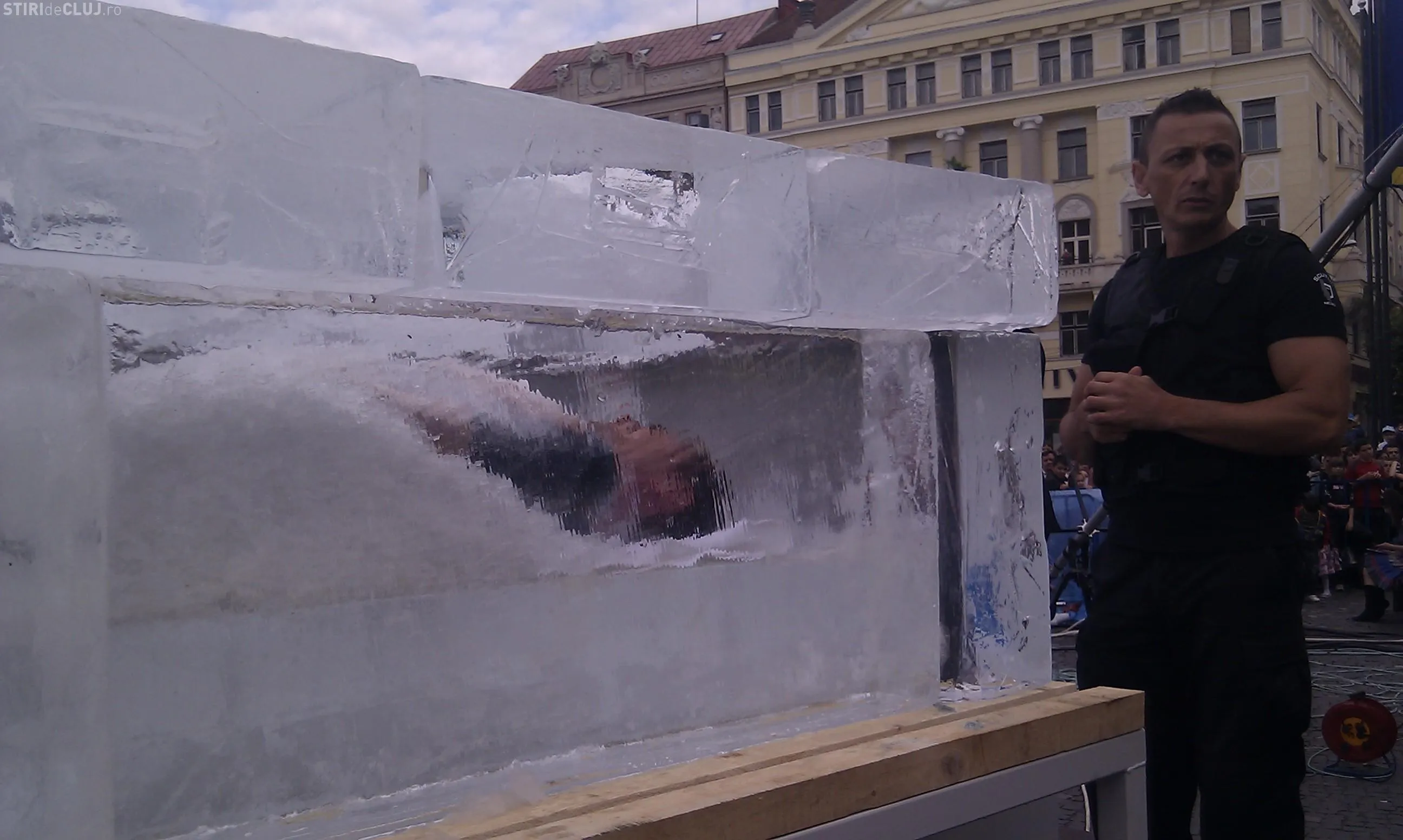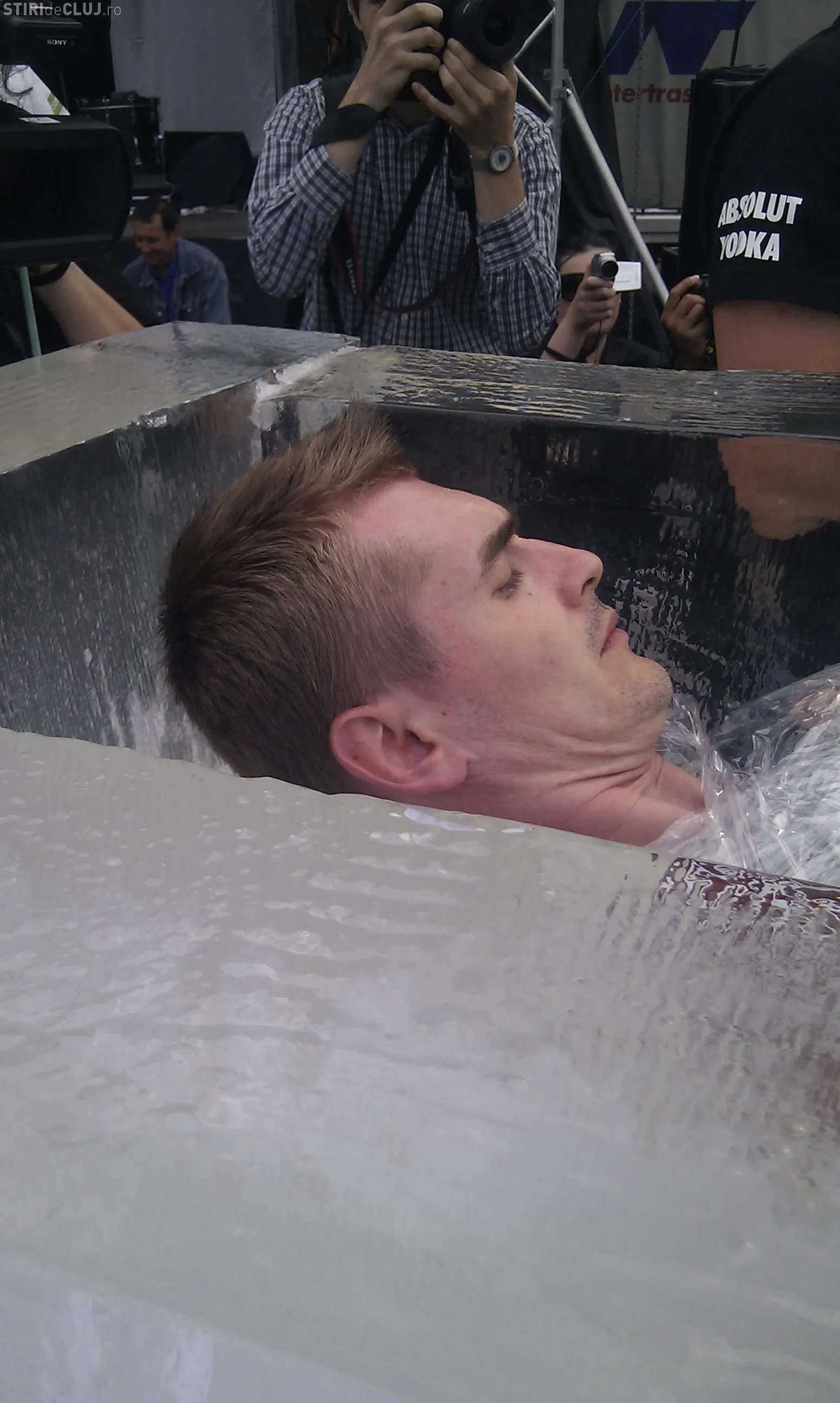 Cristian Gog a stat 3 ore fix in "sicriul de gheata". ESTE RECORD MONDIAL. IMAGINI SENZATIONALE!