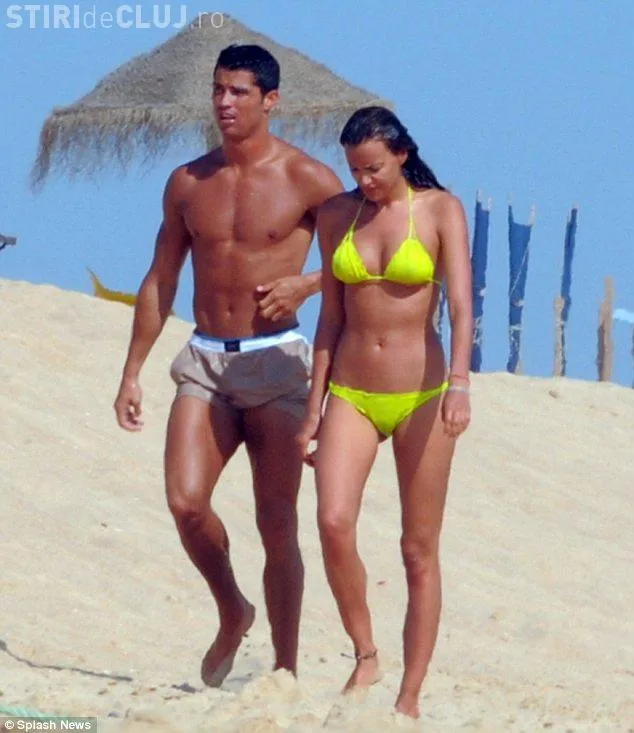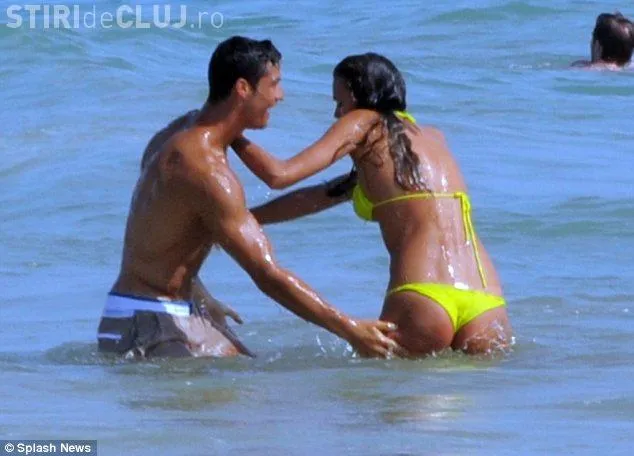 Ronaldo, in varsta de 26 de ani, si iubita lui de 25 de ani, se relaxeaza pe plaja, unde chiar s-au jucat precum indragostitii la primele intalniri.