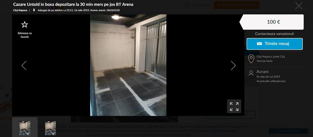 Astfel, un utilizator de pe OLX a postat un anunț în care dă spre închiriere o boxă de depozitare pentru perioada festivalului UNTOLD.