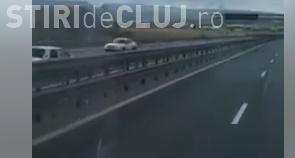 Șoferul unei Dacii 1310 a fost filmat în timp ce mergea cu mașina pe autostrada Cluj-Turda, însă pe sensul greșit.