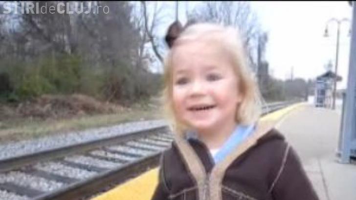 O fetiță de trei ani a reacționat entuziasmant când a văzut prima dată un tren.