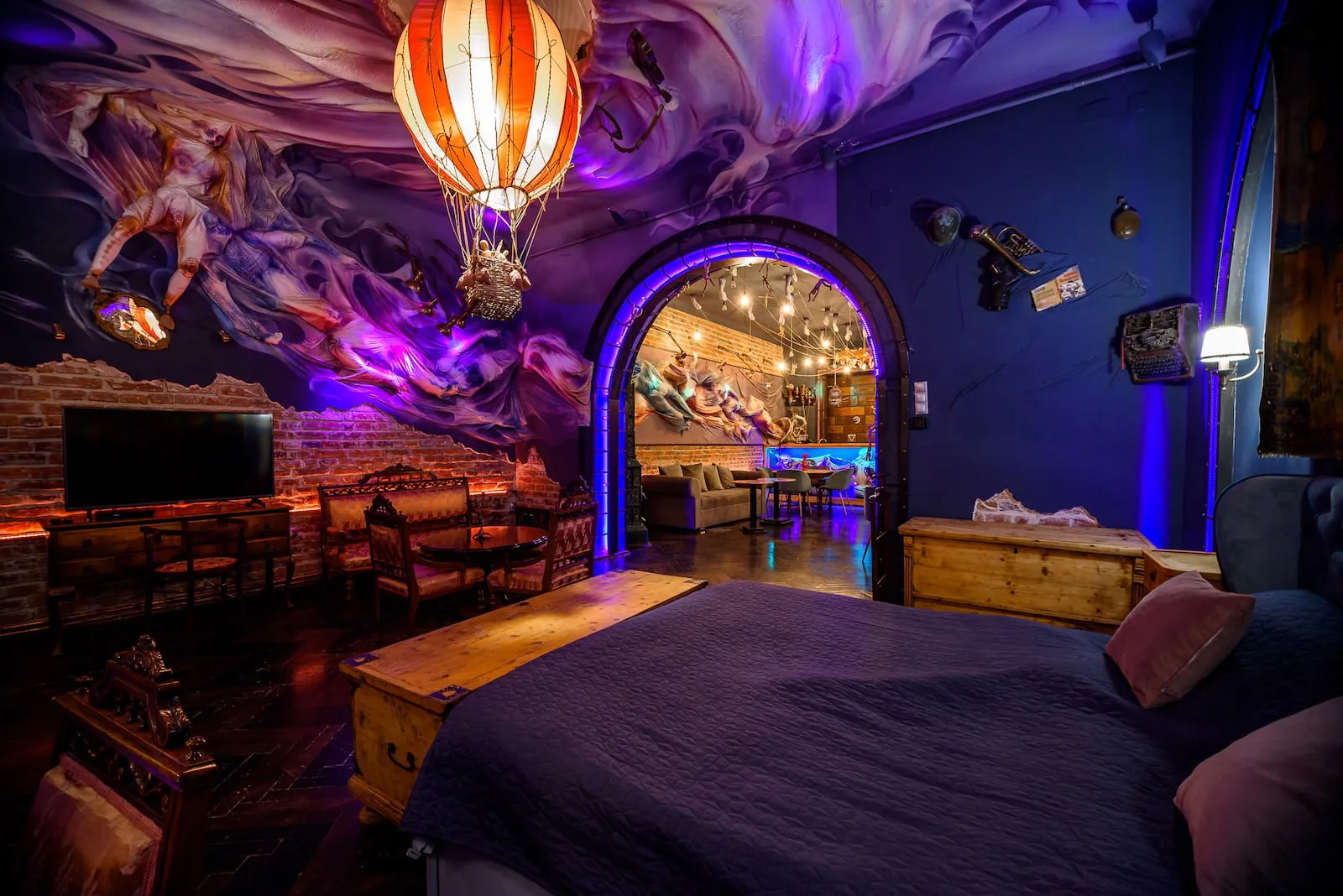 Apartamentul Fantasy a fost amenajat în locația în care a funcționat ”Q Caffe” și are 84 mp. Locul a fost creat cu o atenție extremă la detalii și dragoste, într-un apartament în stil mansardă, în inima orașului, scrie cluj-napoca.xyz.