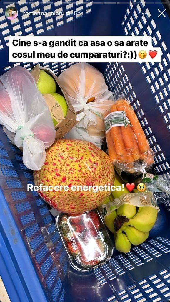 „Cine s-a gândit că așa o să arate coșul meu de cumpărături? Refacere energetică!'', a scris Ramona Olaru pe contul ei personal de Instagram.