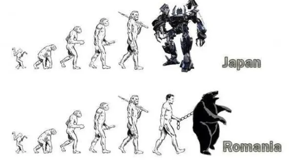 O fotografie postata pe internet parodiaza evolutia omului si prezinta diferentele dintre romani, americani, japonezi sau rusi.