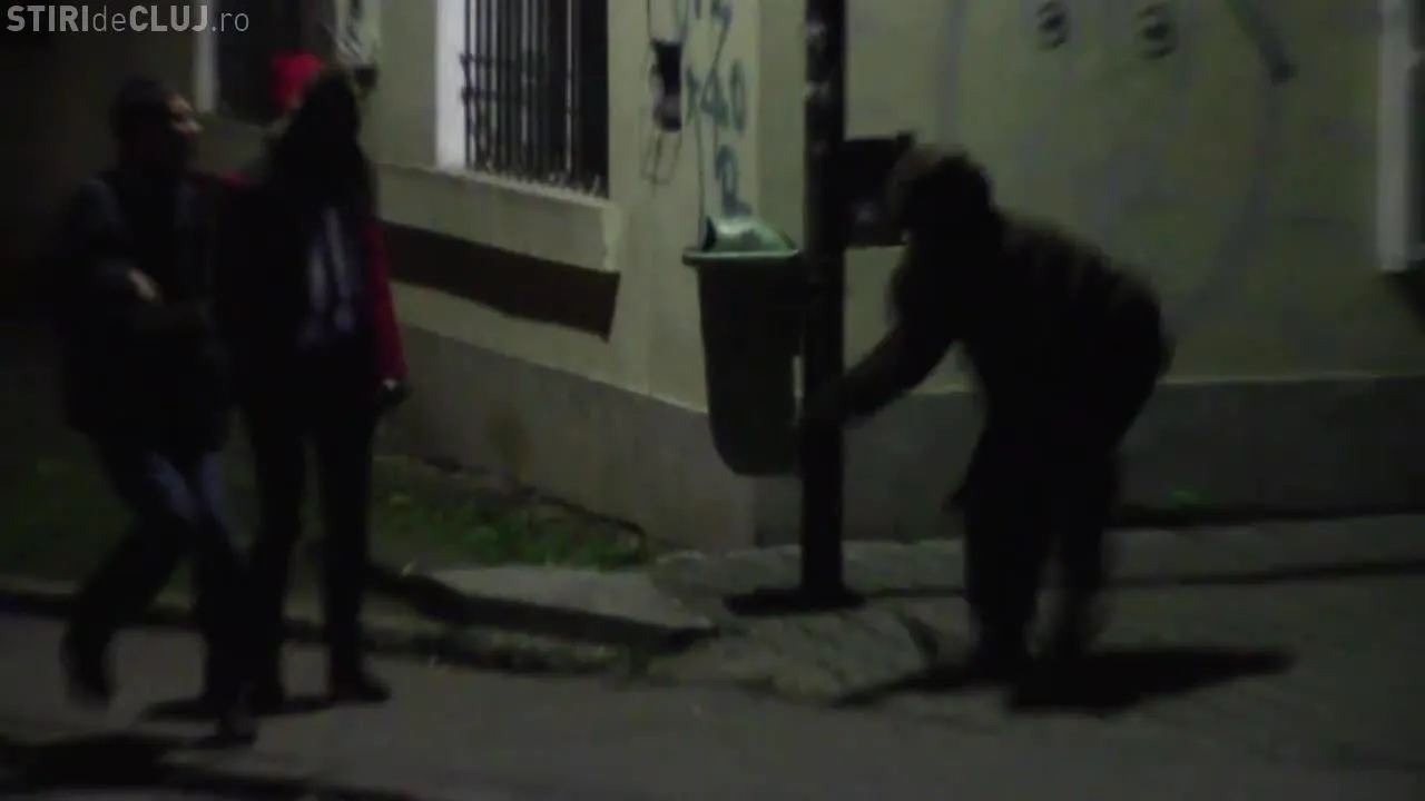 Dacă în filme bărbații se luptă cu ursul, pe stradă fug de el. Mircea Bravo s-a costumat în urs și așteptat un cuplu pe o stradă din Cluj-Napoca.