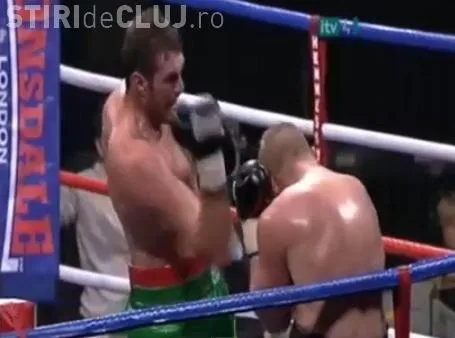 Boxerul si-a prins adversarul in corzi, dar una dintre lovituri a deviat din manusa acestuia si l-a facut KO.