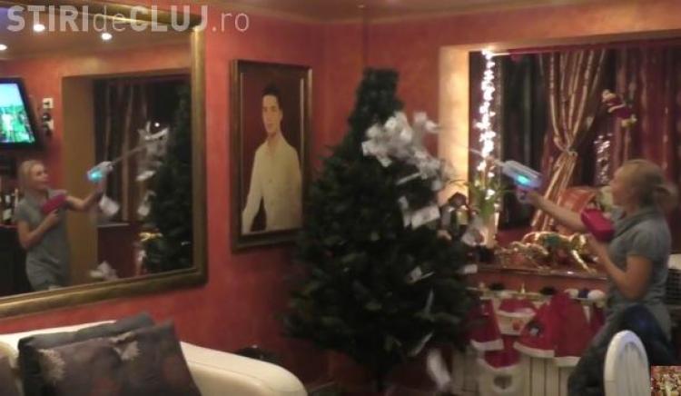 În clipul postat pe contul său de Youtube, Nelson Mondialul și-a ”înarmat” soția cu două pistoale care aruncă bani. Mondialu a încărcat ”armele” iar apoi i-a spus soției sale, Liana, să înceapă să împodobească bradul. Toată operațiunea a fost transmisă LIVE pe Facebook.